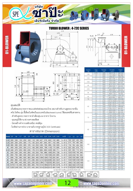 พัดลมไฟเบอร์กลาส พัดลมโบลเวอร์
